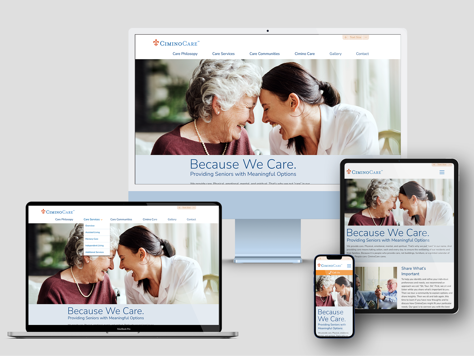 Website for multiple assisted living communities. Responsible for creating high-fidelity responsive web views in Sketch for handoff to developer, art direction and photography selection.