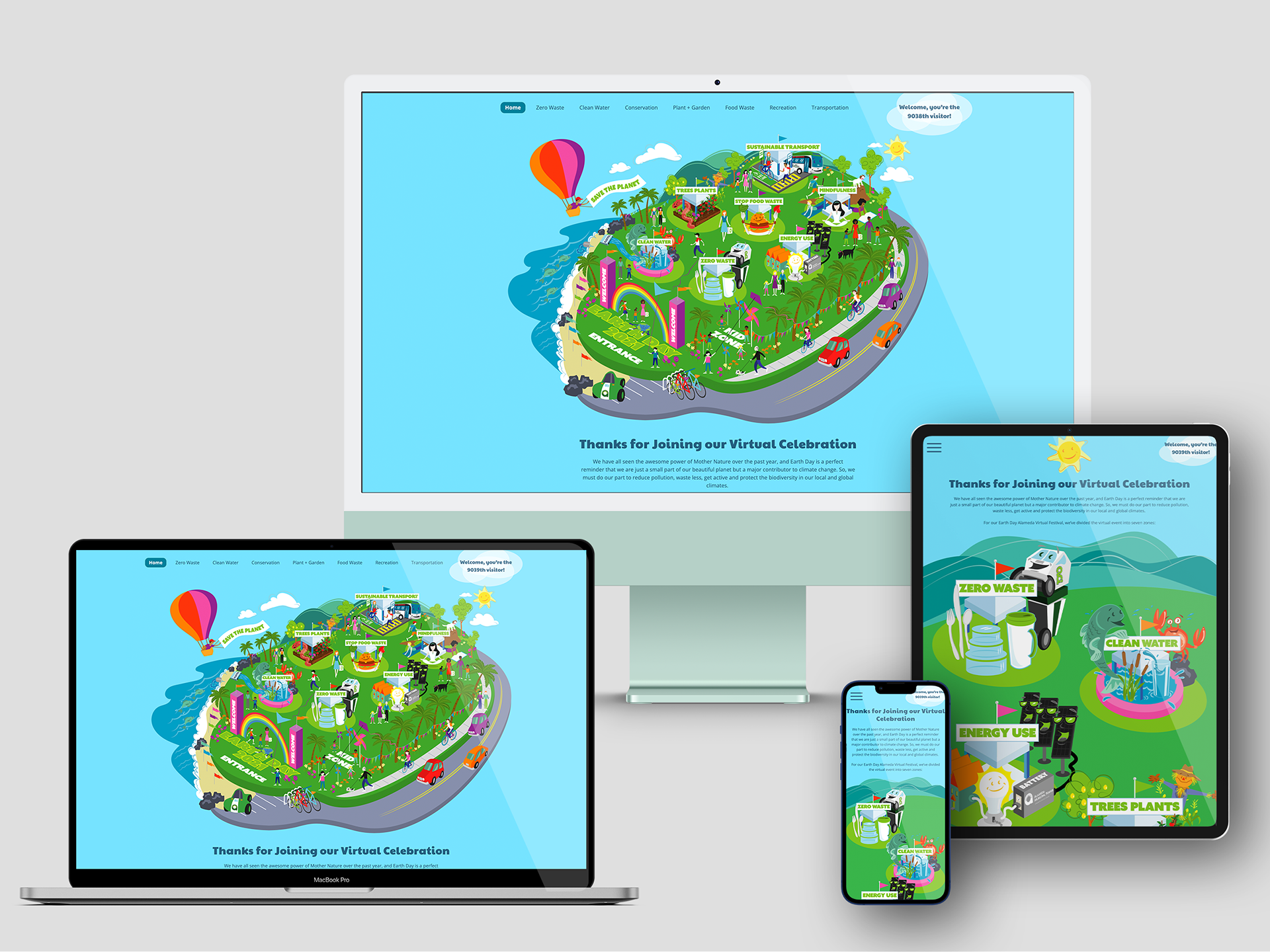 Virtual festival website. Responsible for creating high-fidelity responsive web views in Sketch for handoff to Wordpress developer, art direction including photography selection and layout. Custom illustrations by freelance illustrator.