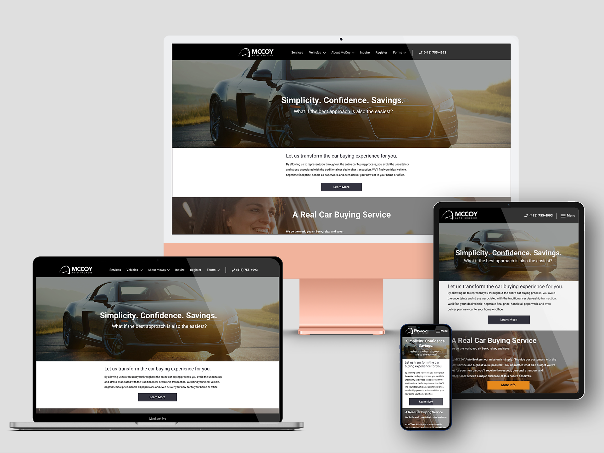 Responsive website design for auto broker service. Responsible for creating high-fidelity responsive web views in Sketch for handoff to developer, art direction, and photography selection.