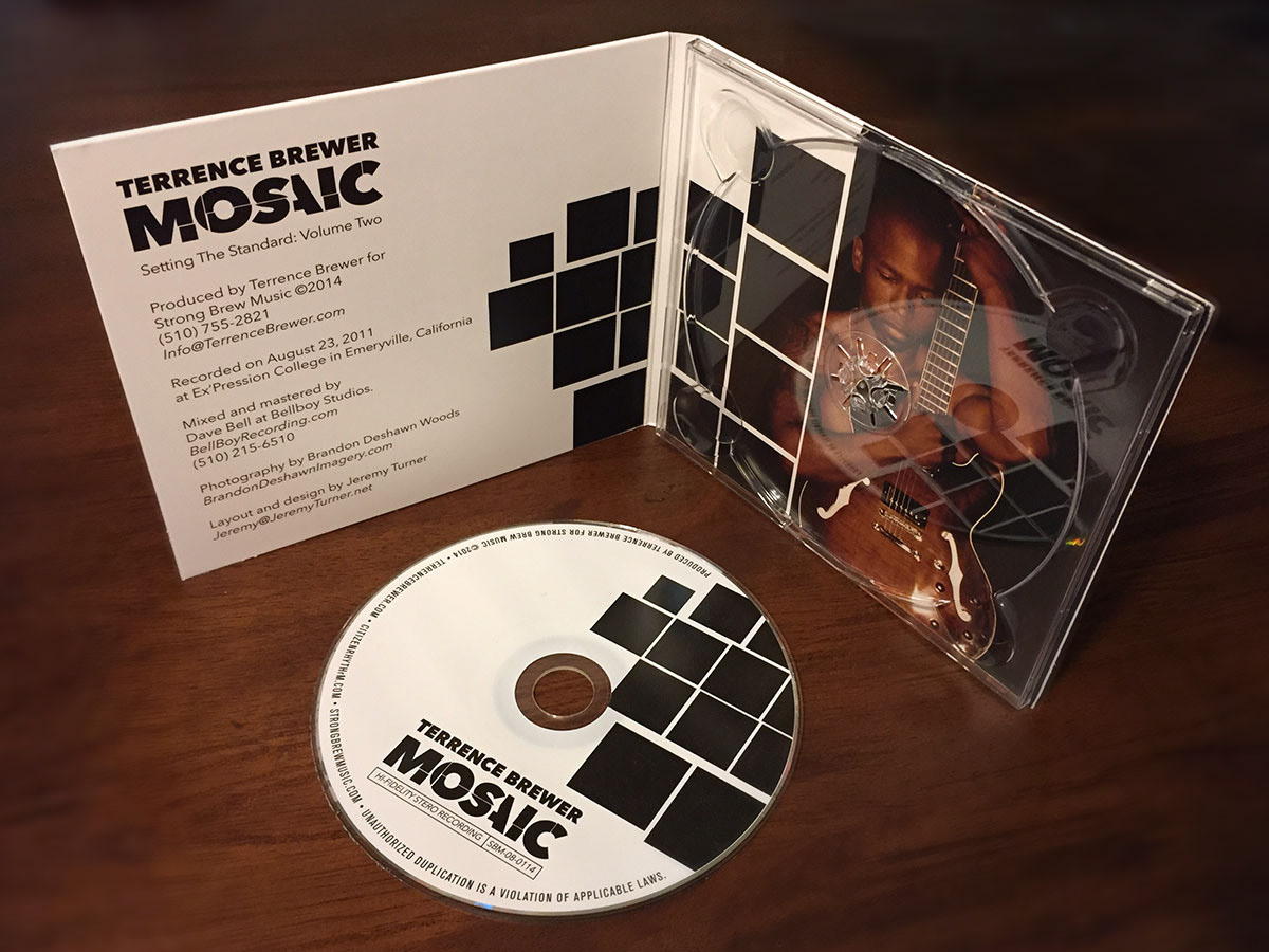 Album cover design, branding, packaging layout for award-winning Bay Area jazz guitarist Terrence Brewer.